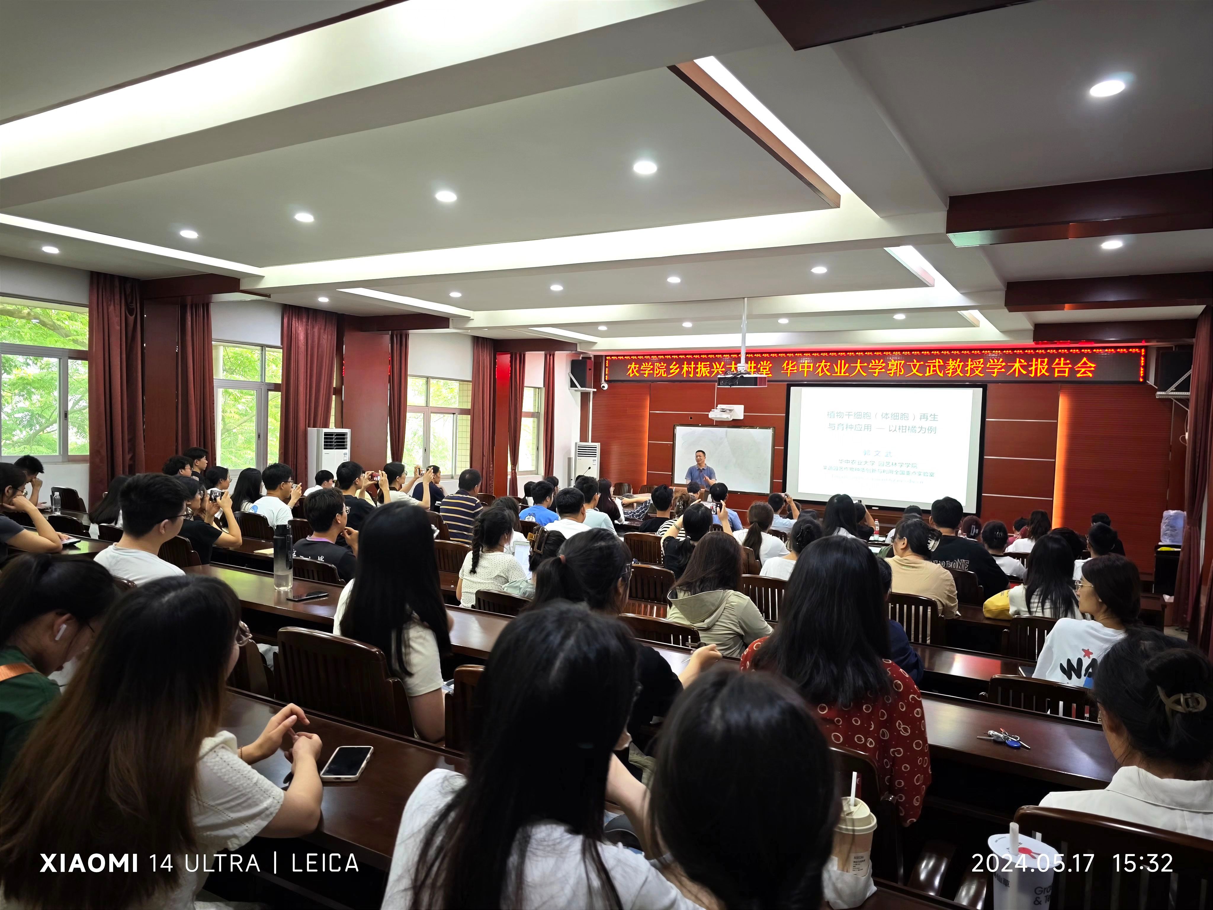 517日,国家杰出青年科学基金获得者、教育部长江学者特聘教授、华中农业大学郭文武教授应邀到校交流学术,为师生们作了一场“植物干细胞(体细胞)再生与育种应用—以柑橘为例”的专题报告,报告会由李建雄经理主持。