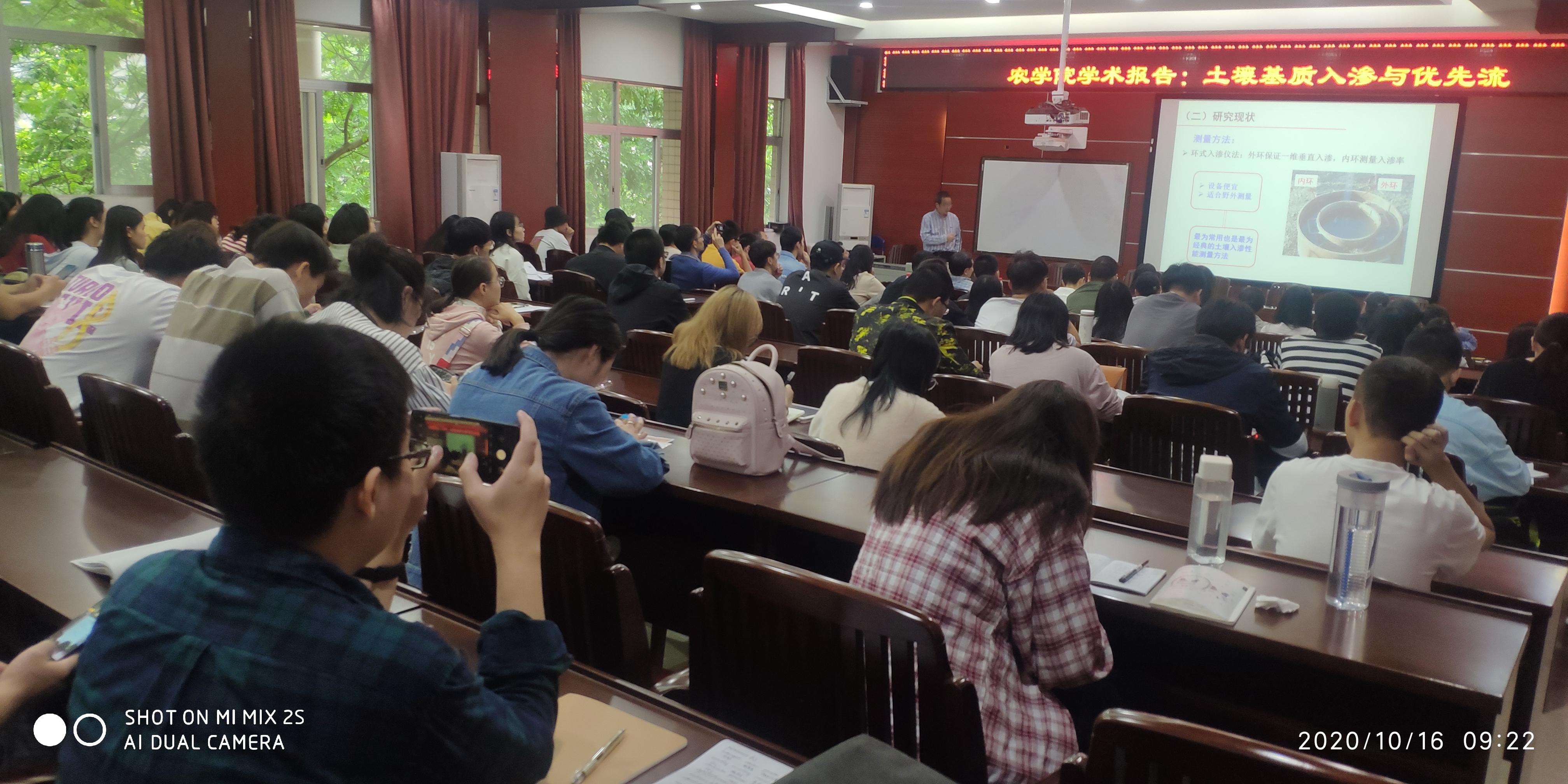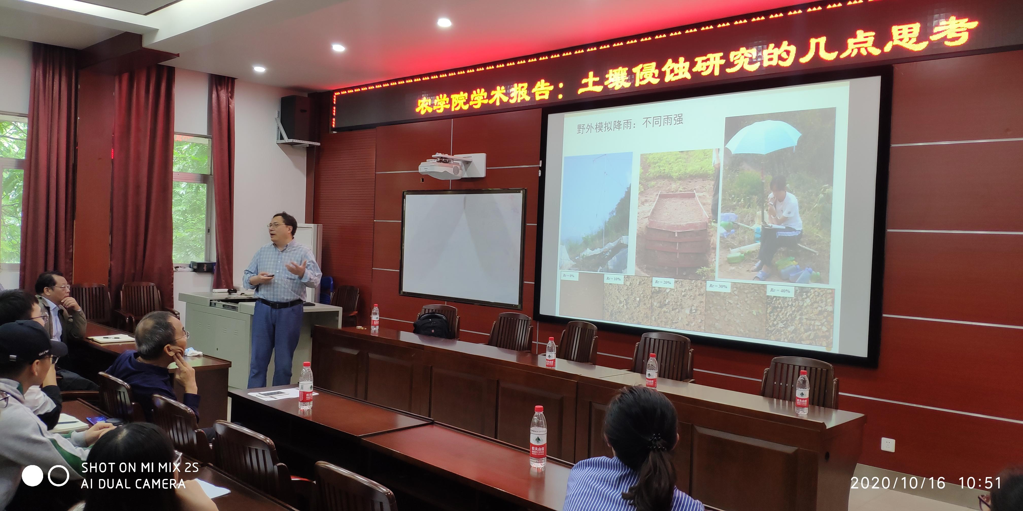 10月16日,中国农业大学雷廷武教授、华中农业大学蔡崇法教授应邀到校,在sunbet申搏306学术报告厅分别作题为“土壤基质入渗与优先流”和的“土壤侵蚀研究的几点思考”的学术报告。sunbet申搏、林公司、资源环境与材料公司等100多名师生聆听了报告。