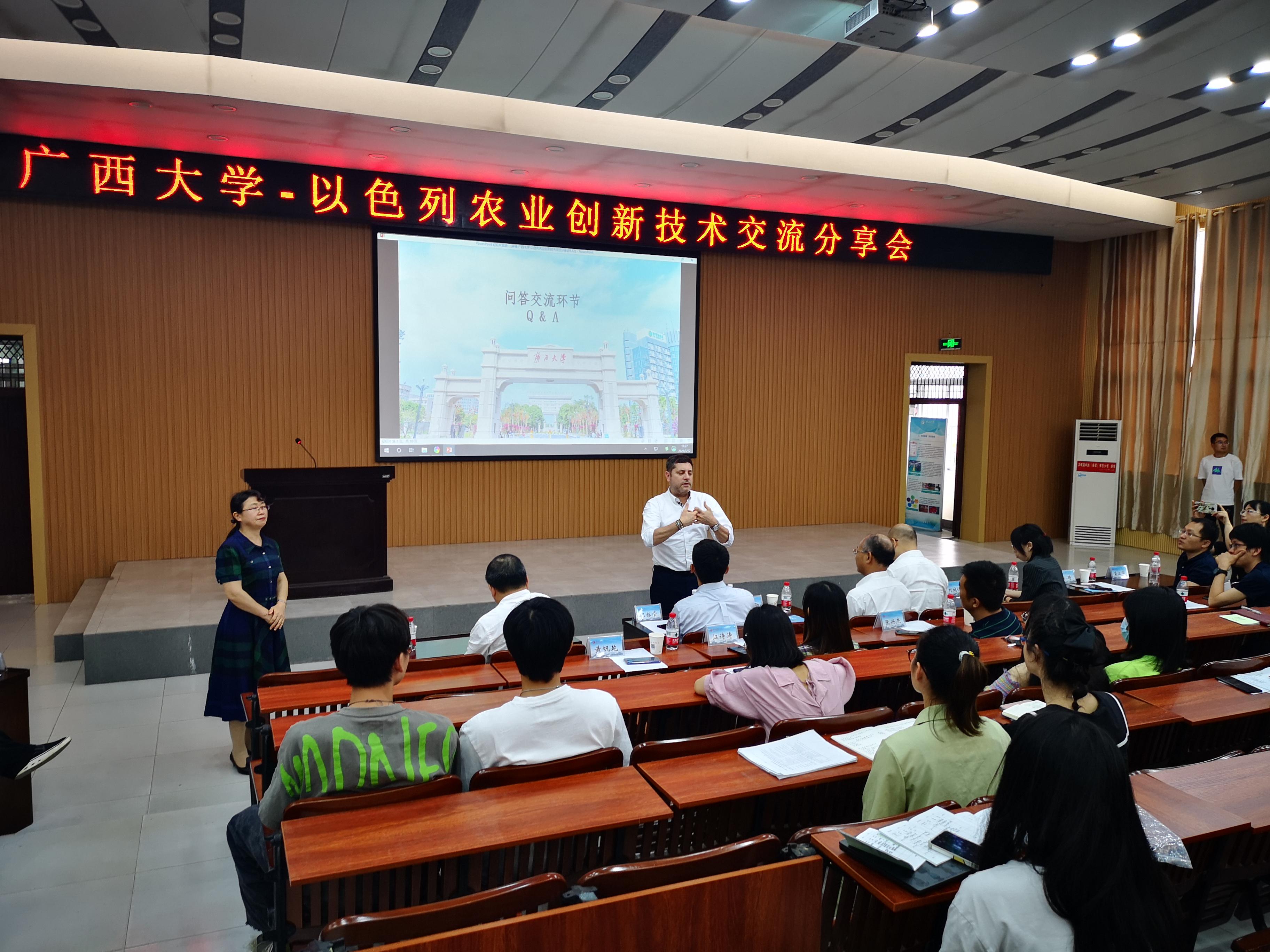 为拓宽公司与以色列的技术合作交流渠道、提供农业技术创新交流平台,在自治区外事办公室、自治区教育厅的支持下,公司于5月12日下午在sunbet申搏124报告厅与以色列驻广州总领事馆合作举办“sunbet申搏-以色列农业创新技术交流分享会”。sunbet申搏副董事长冯家勋、以色列驻广州总领事馆总领事劳霈乐、学术与科技事务主任刘婉仪、捷佳润科技集团股份有限公司董事长温标堂、深以咨询(深圳)有限公司首席执行官叶健、伯尔梅特控制阀门(上海)有限公司华南区销售经理杨琦以及sunbet申搏师生代表参加本次分享会,会议由sunbet申搏副经理吴海燕主持。