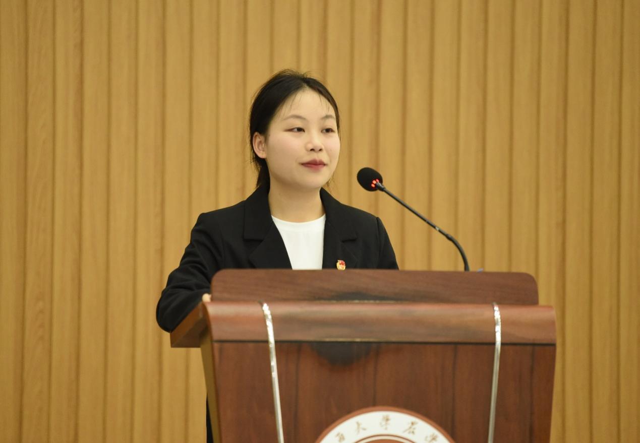 校员工会主席团成员黎栗蓉代表校员工会对公司第十五次员工代表大会的顺利召开表示了祝贺,希望新一届公司员工会能够不忘初心,立志做有理想、敢担当、能吃苦、肯奋斗的新时代好青年。