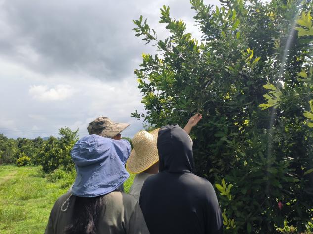 近些年来,扶绥坚果科技小院聚焦产业需求,持续推进坚果种植技术研发,多项实用技术助力坚果产业发展壮大。实践队在薛老师的指导下学习了多项技术,如,果树开角整形营养袋的制作与应用技术、“薛氏滴干”技术、拉枝技术及环割技术;同时也进行了一些试验,如,薛氏袋滴灌水肥试验、磷肥长期定位试验;为了检测及防治坚果园的各类病虫害,我们也进行了澳洲坚果速衰病及慢衰病发病率以及园内的病虫害和鼠害发生情况的调查、开展了覆盖腐熟青皮的工作、进行了石硫合剂涂干工作。