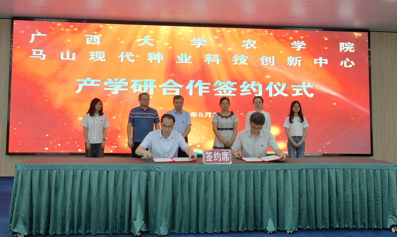 5月21日,农公司党委副书记甘敏思带队到马山县与农业企业签订产学研合作协议并授牌,与相关党支部座谈交流。