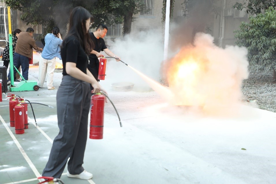 为了让培训更加贴近实际,培训活动还安排了灭火器使用的实操环节。师生们在消防人员的指导下,亲手操作灭火设备,体验了如何正确、迅速地扑灭初期火灾。