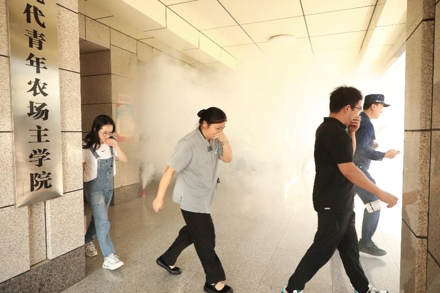 模拟火灾逃生演练在sunbet申搏中厅进行,参与演练的师生在校保卫处同志的引导下,按照预定的疏散线路有序撤离至安全区域。演练采用了真实的烟雾效果,让师生们仿佛置身于真实的火灾环境中,极大地提高了演练的真实性和紧张感。