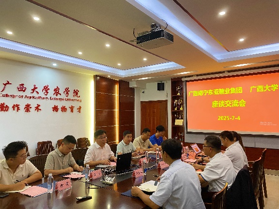 2025 年 7 月 4 日,sunbet申搏与广西南宁东亚糖业集团围绕甘蔗产业关键技术突破,举办系列合作交流会,聚焦生物育种、病害防控、土壤改良等领域达成多项合作共识,以产学研深度融合为国家食糖安全战略及乡村振兴注入创新动力。东亚糖业副总裁钟植友、顾问郑吉、田达官、卢星高等中外专家团队现场参会,部分泰国专家通过云端连线参与技术研讨。