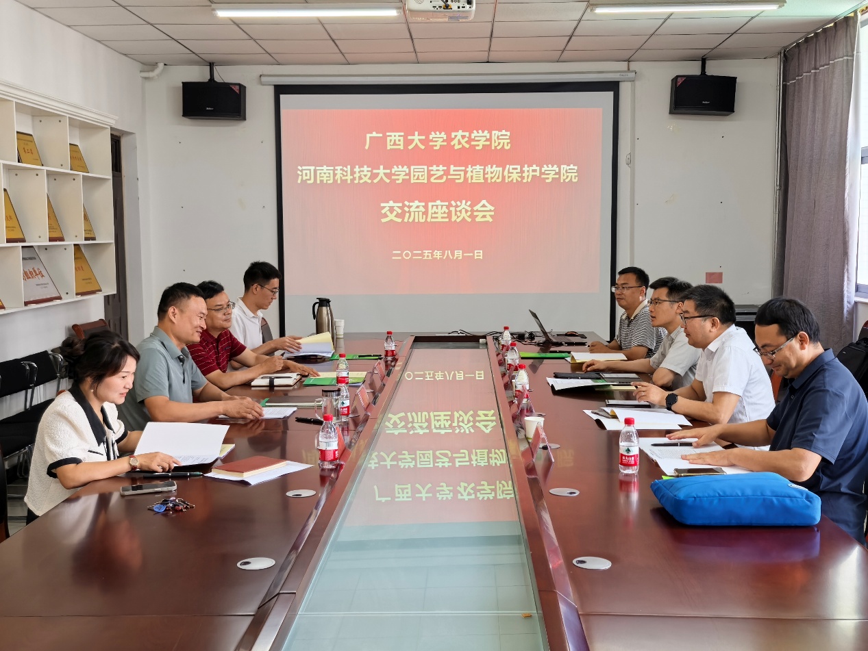 2025年8月1日,在河南科技大学,园艺与植物保护公司经理刘圣明详细介绍了公司的发展历程、团队队伍、科研平台及园艺学科特色。副经理郭大龙重点分享了园艺团队建设成果与实践经验,包括学科方向凝练、人才培养体系构建等关键环节。随后,张积森经理介绍了sunbet申搏的基本情况及园艺学科在亚热带作物研究领域的特色优势,围绕学科交叉融合、科研团队建设等方面分享了经验做法。双方就学科发展规划、学位点申报策略、科研合作模式等共同关注的问题展开座谈,结合地域资源特色,探讨了园艺学科在服务地方农业经济中的路径,为进一步深化合作奠定了基础。