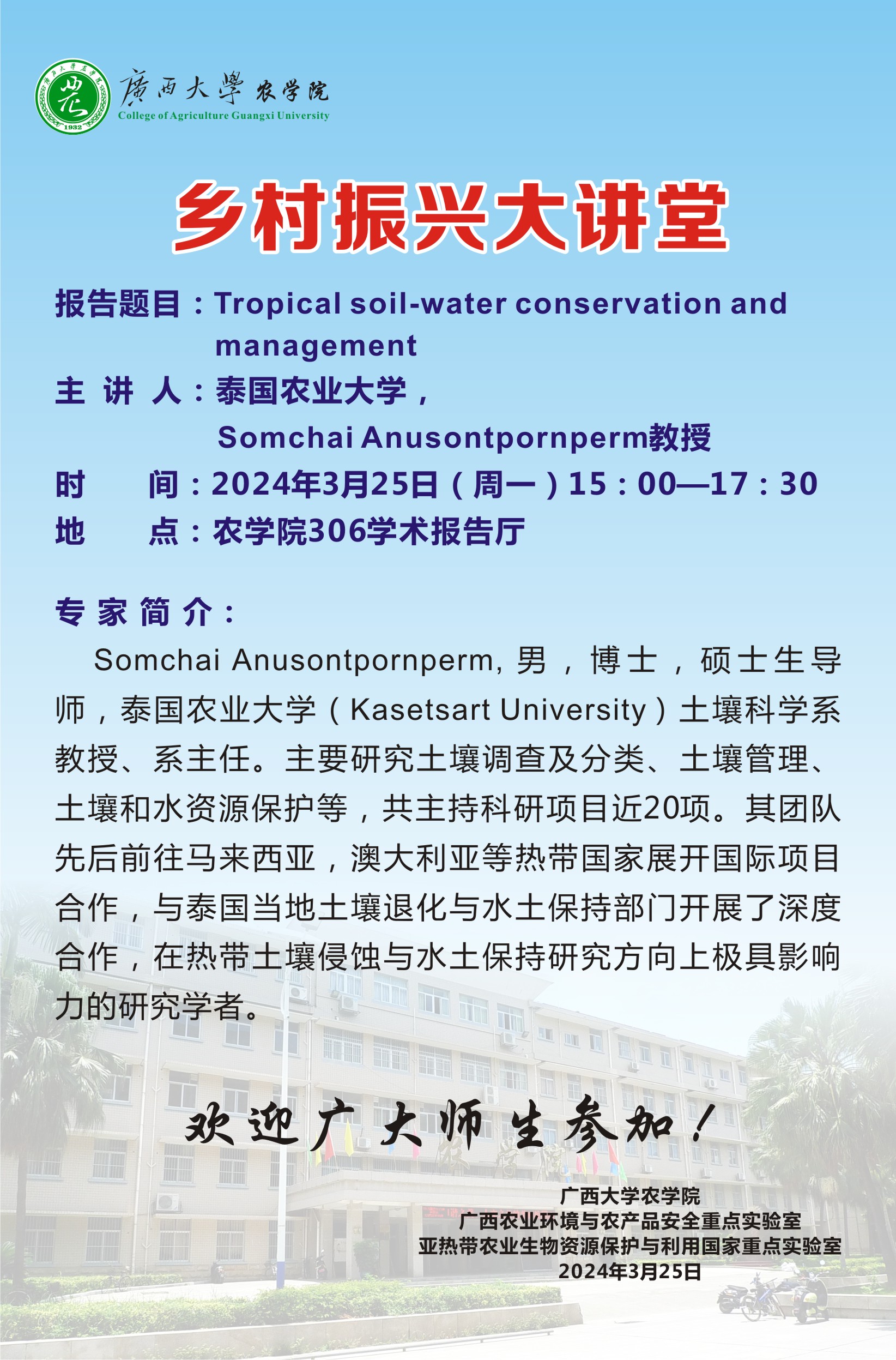 乡村振兴大讲堂-Tropical soil-water conservation and management