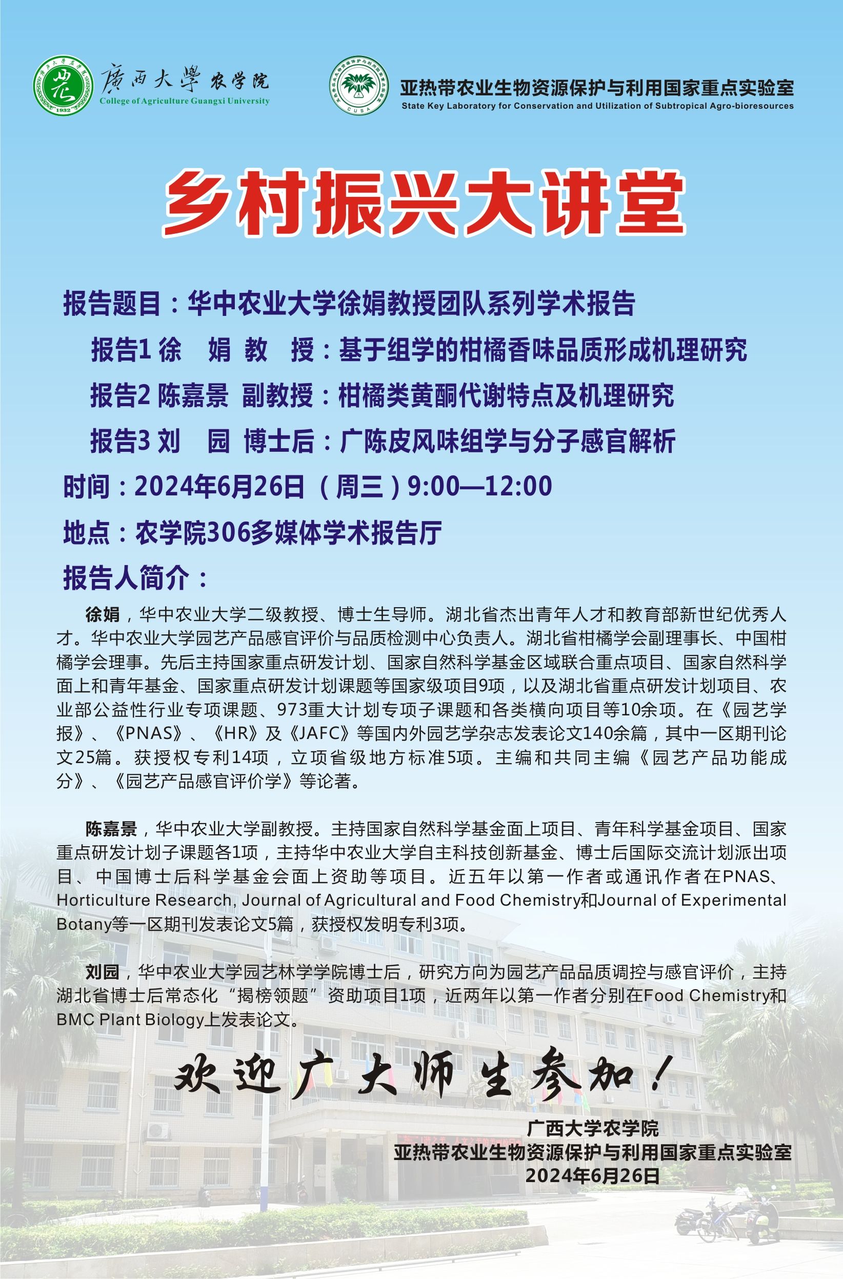 乡村振兴大讲堂-基于组学的柑橘香味品质形成机理研究
