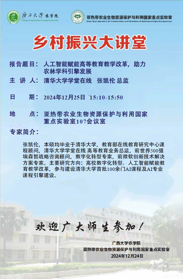 乡村振兴大讲堂-人工智能赋能高等公司产品改革,助力农林学科引擎发展-张凯伦
