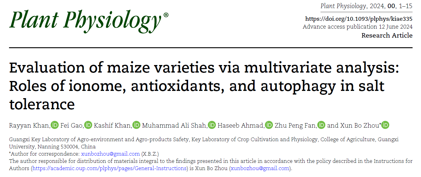 sunbet申搏作物学博士后Rayyan Khan博士为该论文的第一作者,硕士研究生高菲等参与了部分工作,周勋波教授为唯一通讯作者。该研究得到了广西巴马县科技人才项目(20210049)的资助。