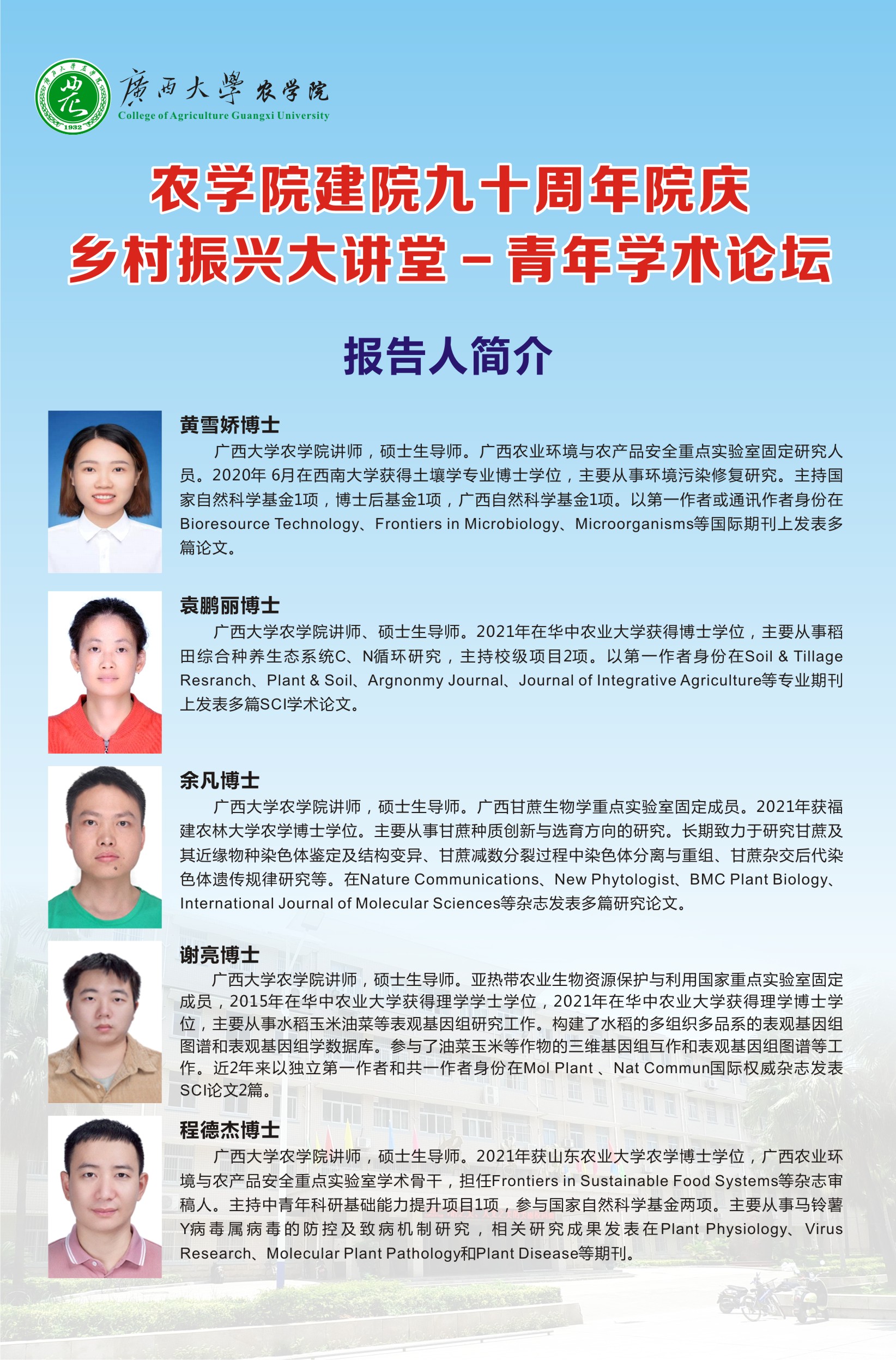 sunbet申搏建院九十周年院院庆乡村振兴大讲堂-青年学术论坛-报告人简介-