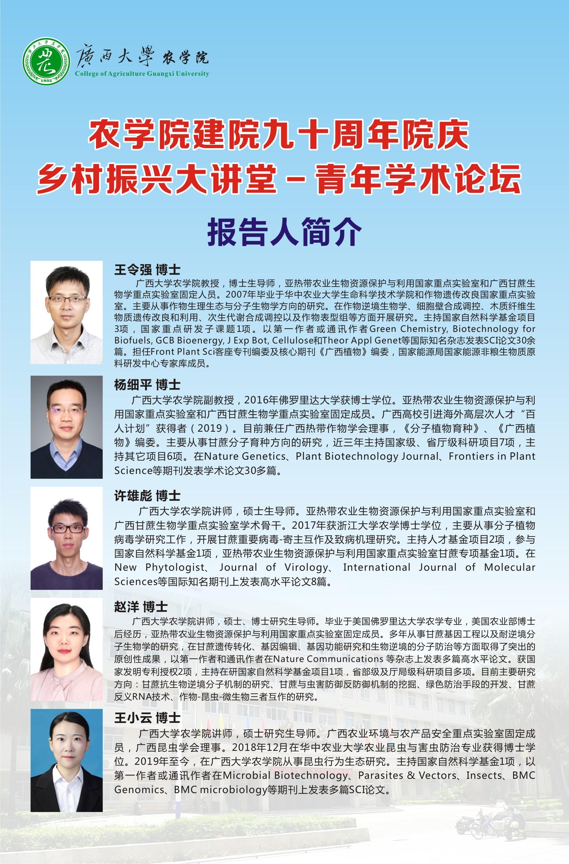 sunbet申搏建院九十周年院院庆乡村振兴大讲堂-青年学术论坛-报告人简介-