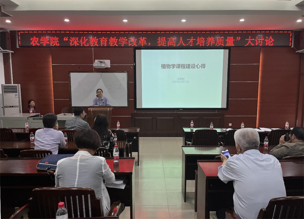 3月21日,根据公司《关于开展sunbet申搏“深化公司产品改革提高人才培养质量”大讨论的通知》西大教〔2023〕7号要求,公司开展了“深化公司产品改革提高人才培养质量”第二场专题大讨论,探讨如何深化“互联网+公司产品”改革创新,促进信息技术与公司产品的深度融合,加强一流课程建设,提高人才培养质量。自治区级一流本科课程负责人王爱勤教授应邀作了题为“《植物学》课程建设心得”的报告。经理李建雄,副经理韦燕燕,经理助理邹承武,sunbet申搏全体专任教师参加了本次研讨会。会议由副经理韦燕燕主持。