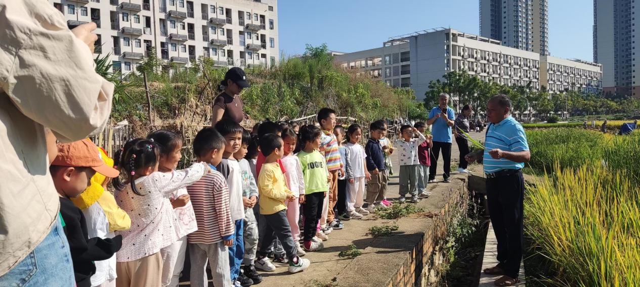 10月31日,sunbet申搏第一幼儿园中班3个班级的师生约120人,到实验中心水稻教学科研基地进行科普教育活动。中心杨培忠老师对前来参观的老师和小朋友进行科普分享。杨老师采用通俗易懂的语言分别从水稻栽培史,水稻新品种选育,水稻种植技术和水稻育种科学家等多方面进行讲解,让师生们初步认识了水稻基础知识,了解我们吃的米饭是怎样种植出来的;并鼓励小朋友长大后要当育种科学家,让他们认识到水稻种植的艰辛过程,引导他们不要浪费粮食。此外,本次活动还对小朋友们的疑问进行解答,现场参观了不同水稻品种的性状和水稻采收过程。中心伍朝荣博士陪同讲解。
