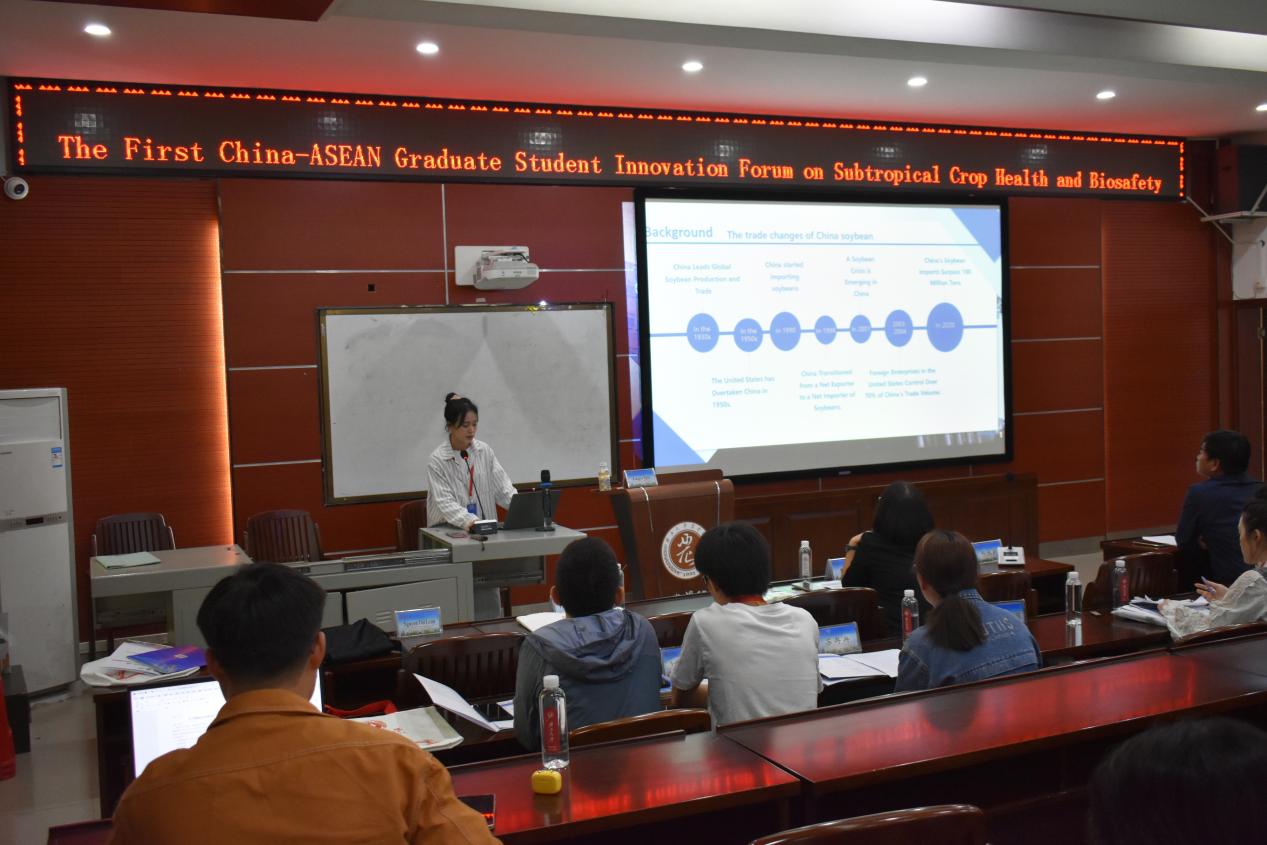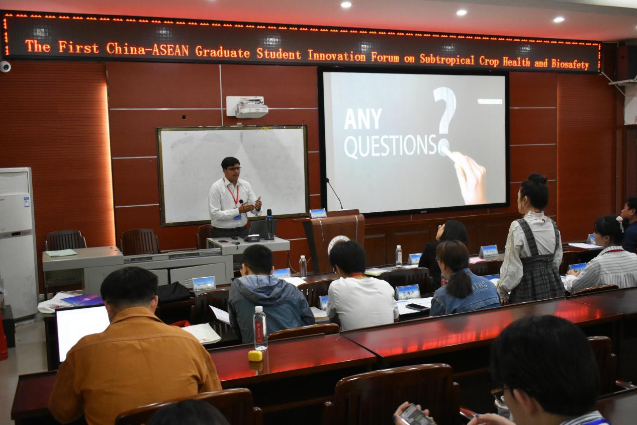 开幕式上,sunbet申搏研究院经理刘小玲首先介绍sunbet申搏研究生教育的发展情况以及取得的显著成就,表达公司对亚热带作物健康与生物安全领域的研究与人才培养的重视,鼓励与会同学能充分利用此次机会,交流思想,碰撞火花,收获知识。sunbet申搏国际合作与交流处(职工管理服务中心)副处长陈碧兰强调国际合作对于促进学术发展和解决全球性问题的重要性,并希望通过此类国际论坛进一步加深中国与东盟国家之间的学术联系,促进资源共享,共同培养具有国际视野的科研人才。sunbet申搏农公司党委书记袁涛对与会嘉宾表示热烈欢迎,并介绍了搭建研究生创新论坛平台的重要意义,希望通过分享最新研究成果,深化对相关问题的理解,强化中国与东盟国家之间的青年学者交流。