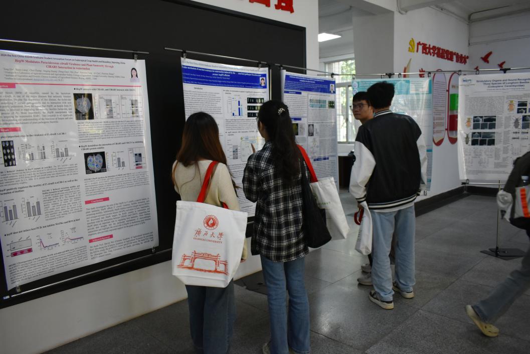 On November 9th, the First China-ASEAN Graduate Student Innovation Forum on Subtropical Crop Health and Biosafety was successfully held at Guangxi university. The forum, hosted by Guangxi University, focused on the theme of "Crop Health and Biosafety" with the aim of constructing a high-level academic exchange platform and fostering interdisciplinary integration. The forum brought together graduate students from Guangxi University, Beibu Gulf University, Vietnam National University, Universiti Tun Hussein Onn Malaysia, Kasetsart University, and other domestic and international universities. Through expert keynote speeches, graduate student presentations, and poster displays, they engaged in in-depth discussions on common issues such as pest and disease control in subtropical crops and bio-breeding. The successful organization of the forum not only enhanced the academic atmosphere among graduate students, but also provided a platform for young scholars to showcase their research achievements and deepen international exchanges.