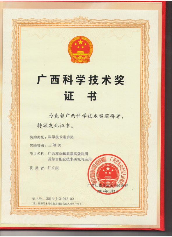 三等奖 何新华-杨梅共生固氮与丰产栽培技术研究(2012、12)