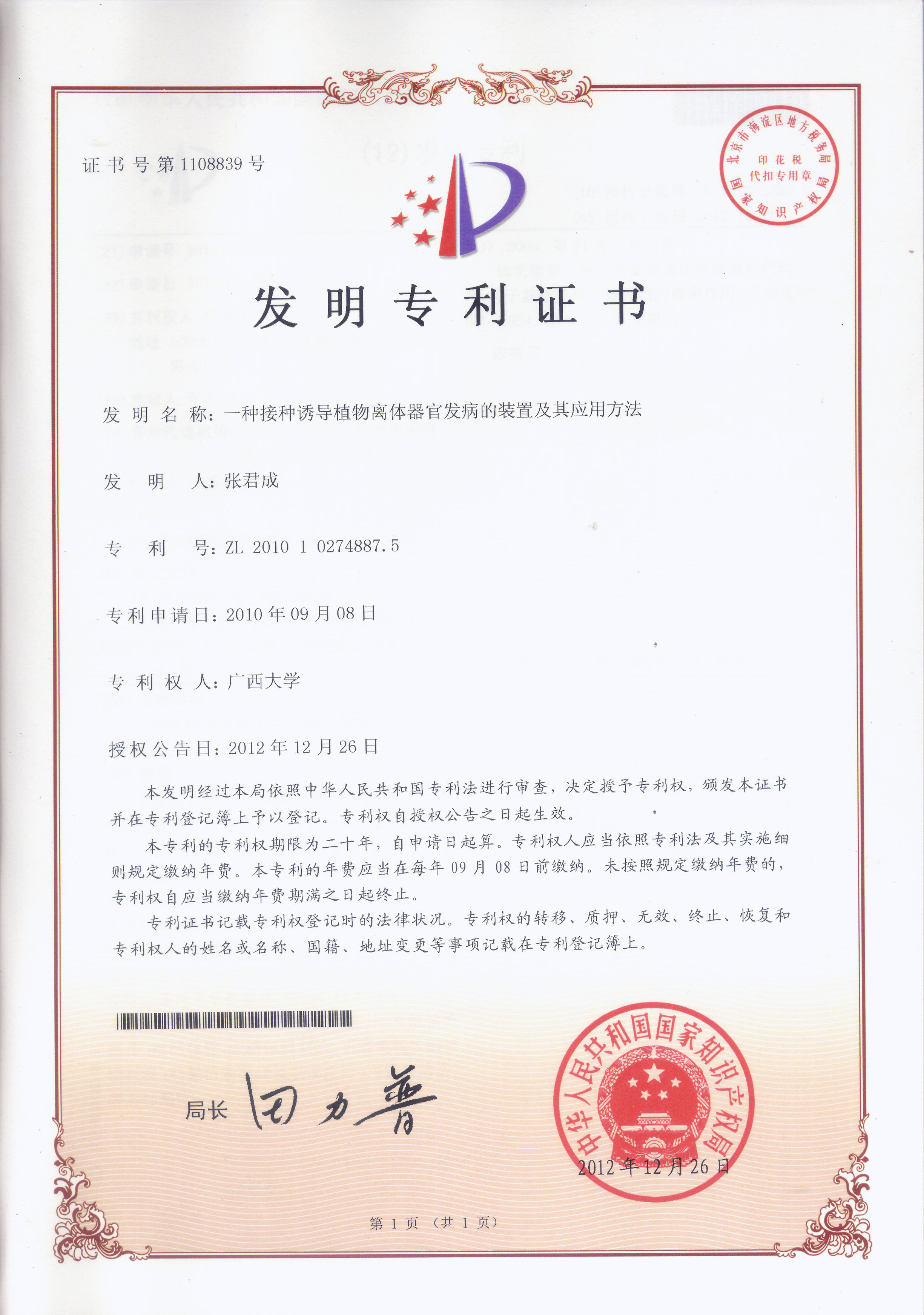 一种接种诱导植物离休器官发病的装置及其应用方法(2012、12)