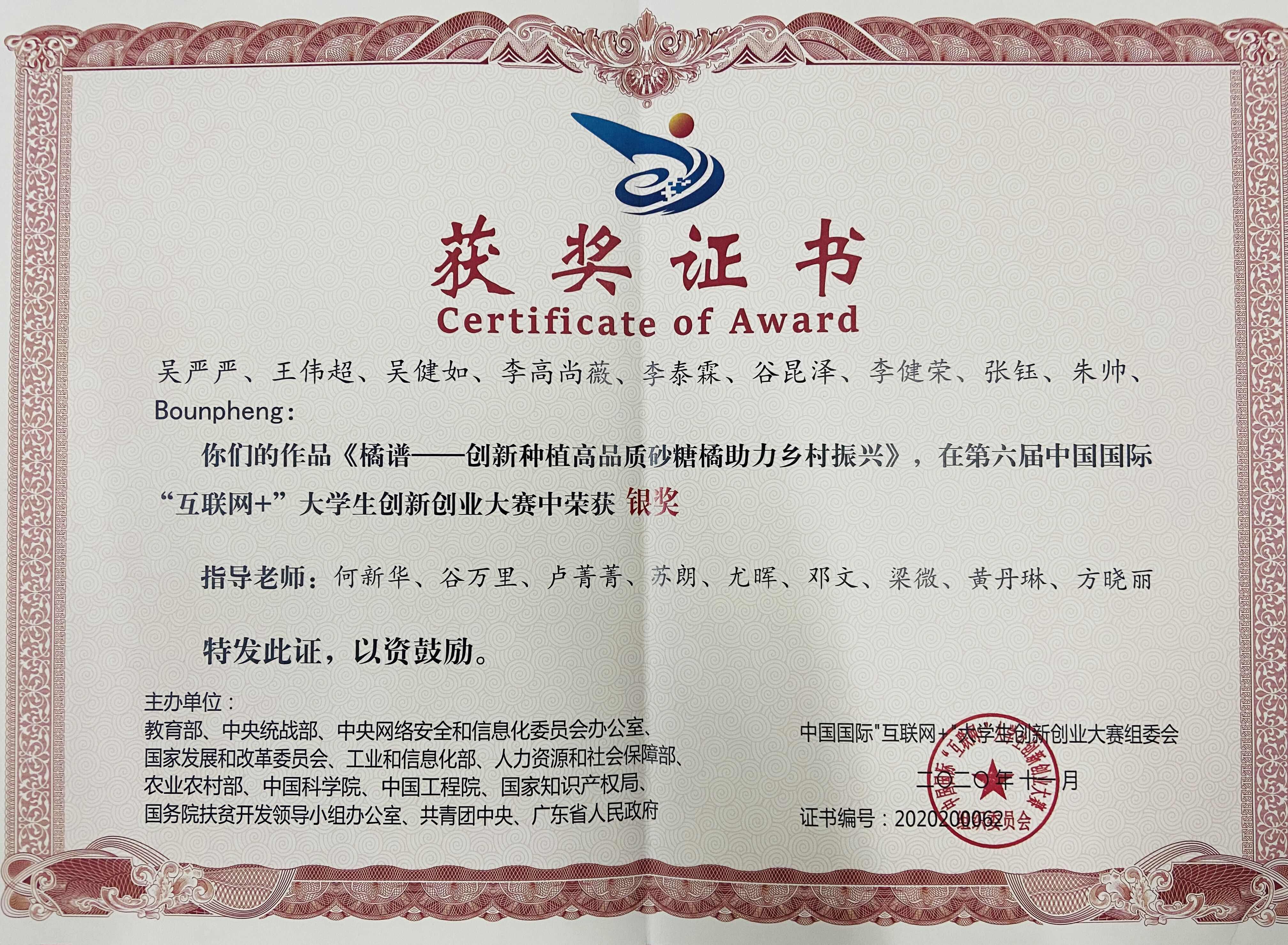 获奖证书